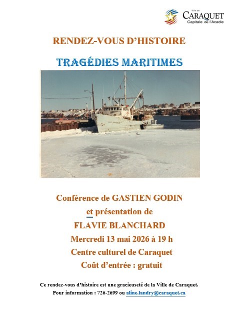 À vos calendriers: prochain Rendez-vous d'Histoire - 13 mai à Caraquet